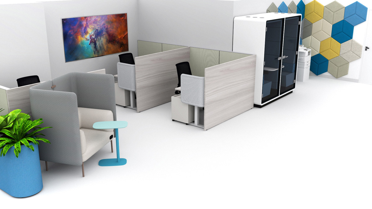 To ensure privacy and reduce noise distractions, we incorporated phone booths into the layout. These dedicated spaces provide a quiet refuge for employees to make or receive calls without disturbing the workflow of others.