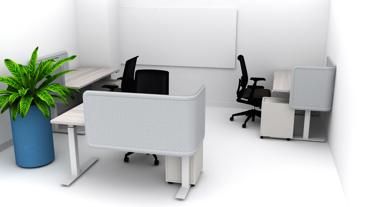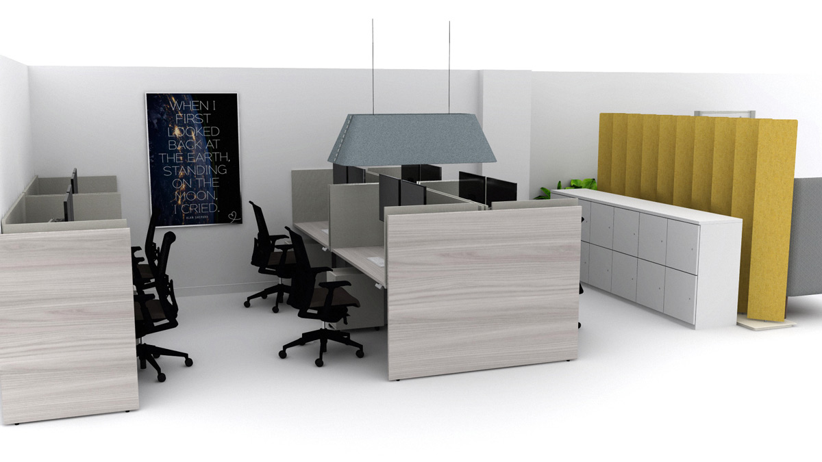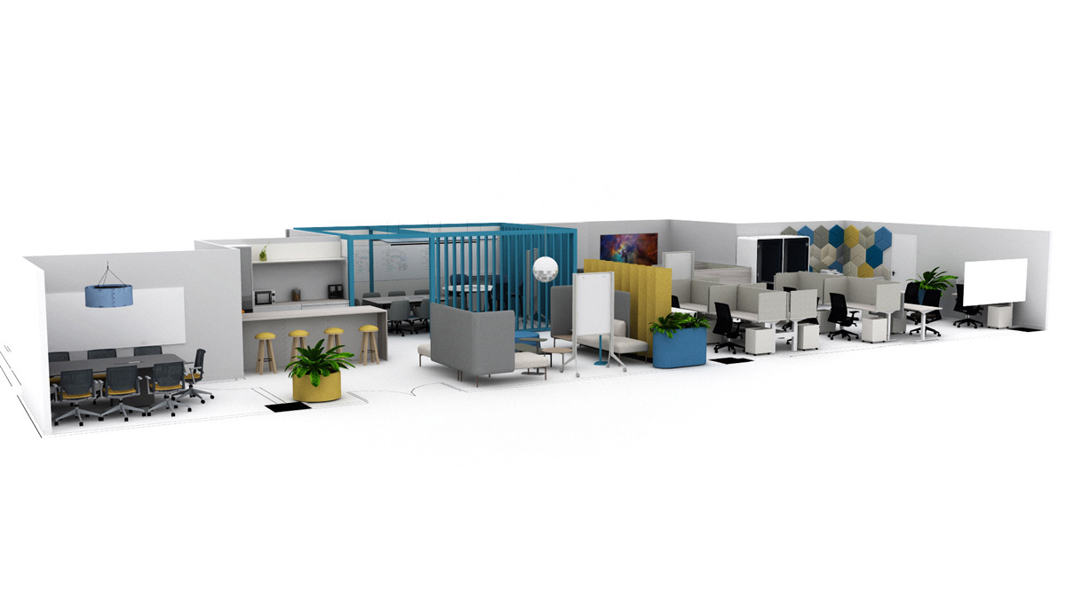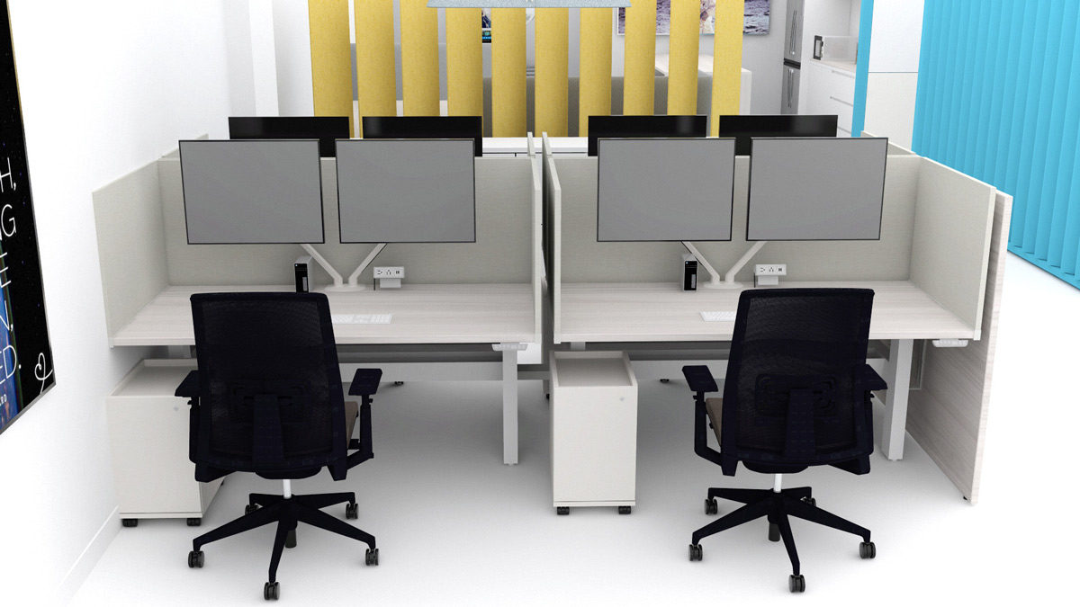 We incorporated two meeting/collaboration tables while making the rest of the space versatile and functional with height-adjustable desks.
