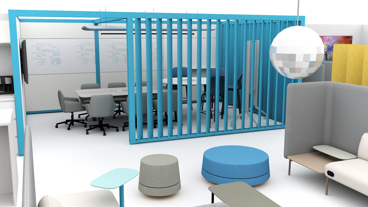 To create a distinctive sense of style and atmosphere in the main meeting area, we included a Haworth Pergola – a freestanding architectural workspace – creating a unique and inviting space where people can get away to connect, collaborate, or focus.