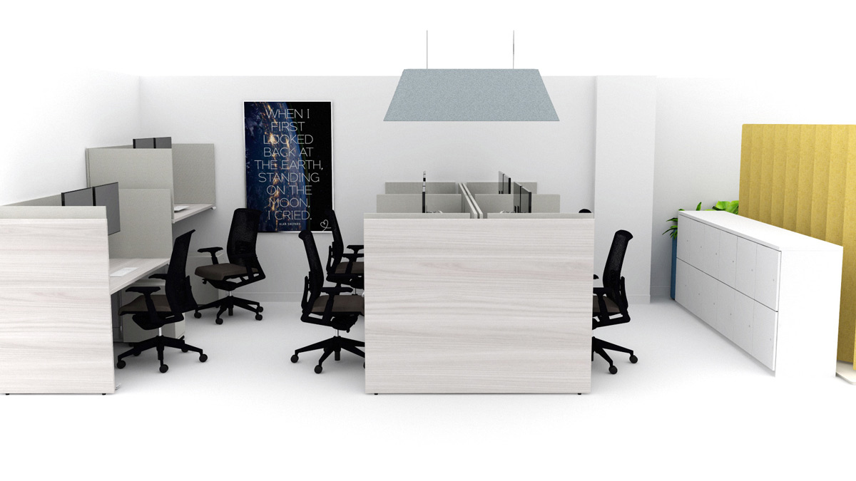 This project presented a unique set of challenges that required a thoughtful and innovative approach to space planning. One of the main hurdles was to ensure privacy for each employee while promoting a collaborative environment. Additionally, the client requested assigned seating in the layout, which added another layer of complexity as we aimed to maintain flexibility. Another significant challenge was the creation of a dedicated focus space within the office. This required us to consider various factors such as lighting, furniture arrangement, and overall ambiance to foster concentration and productivity. Lastly, improving the acoustics of the workspace was critical to reducing noise distractions and creating a comfortable work environment.