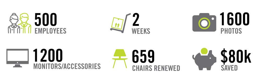 When the office is move-in ready, Unisource Solutions will redeploy product using its tracking system. During the transition, the product has been catalogued and placed back into Equinix’s inventory at Unisource Solutions’ secure, climate-controlled warehouse. At any point, Equinix can log into their inventory portal to track or request pieces when needed.