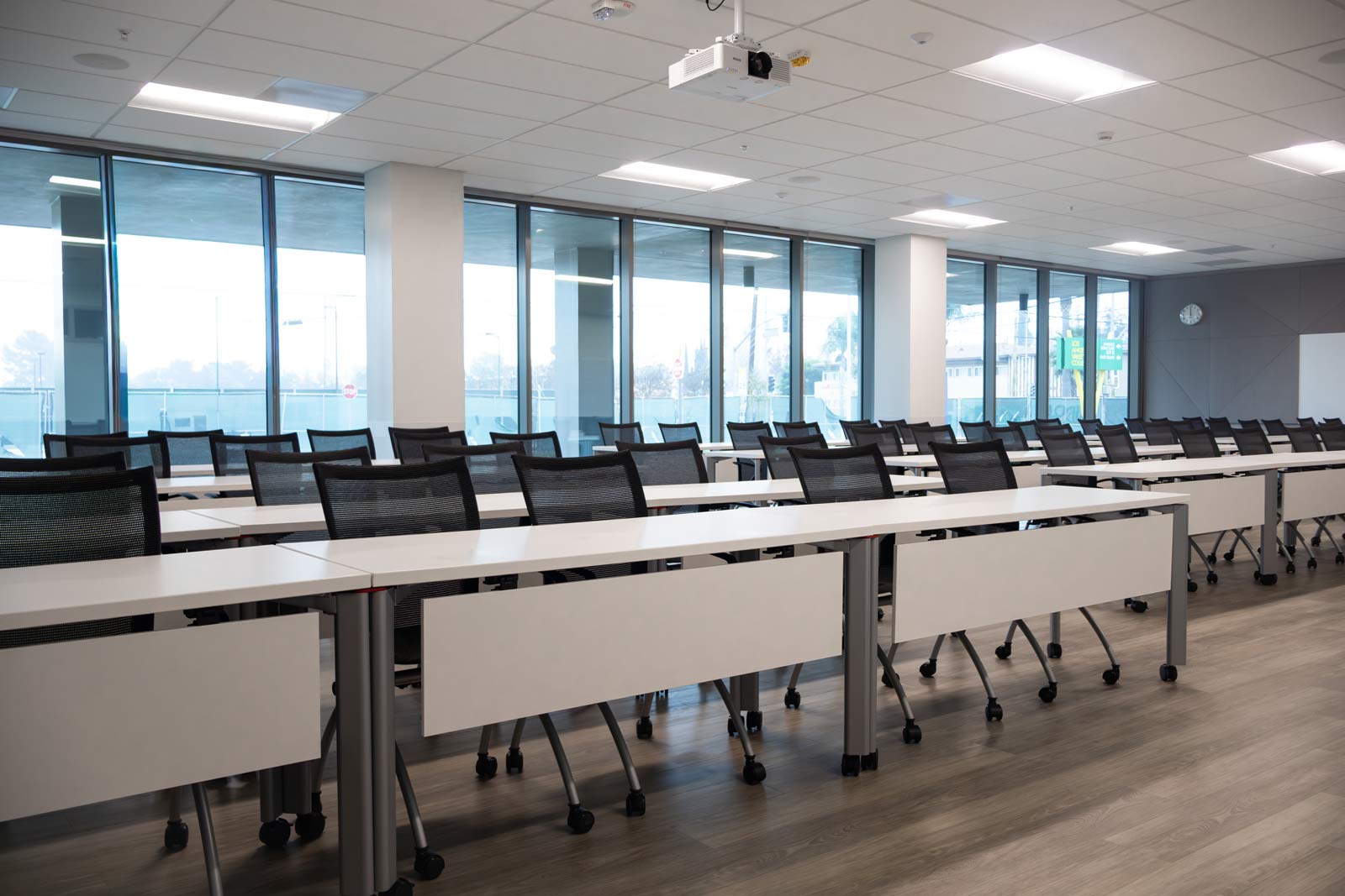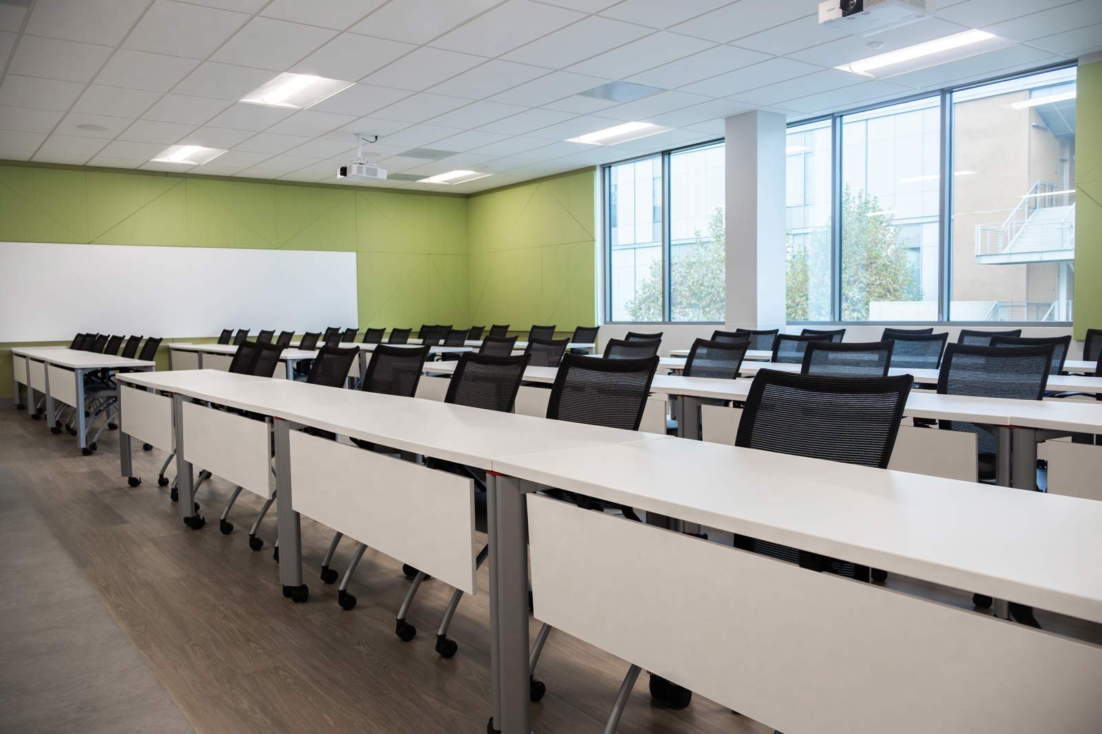 LACCD needed a furniture solution that could support diverse learning modalities across 24 classrooms, 6 computer labs, 4 flex classrooms, a skills-testing classroom, and a large lecture hall, all while meeting the building's LEED Silver certification goals.