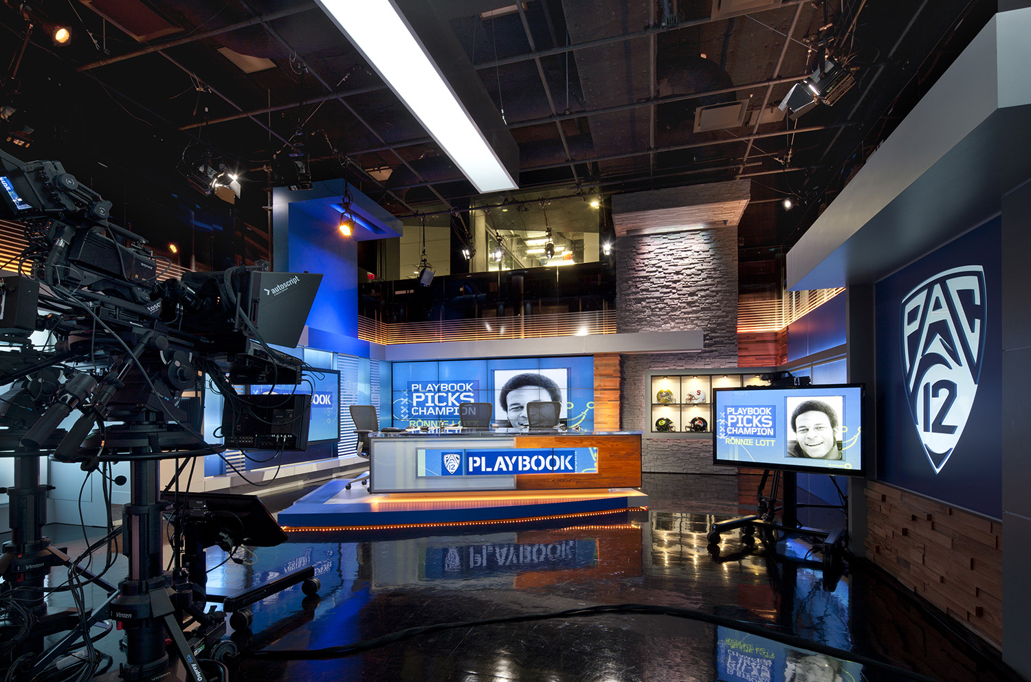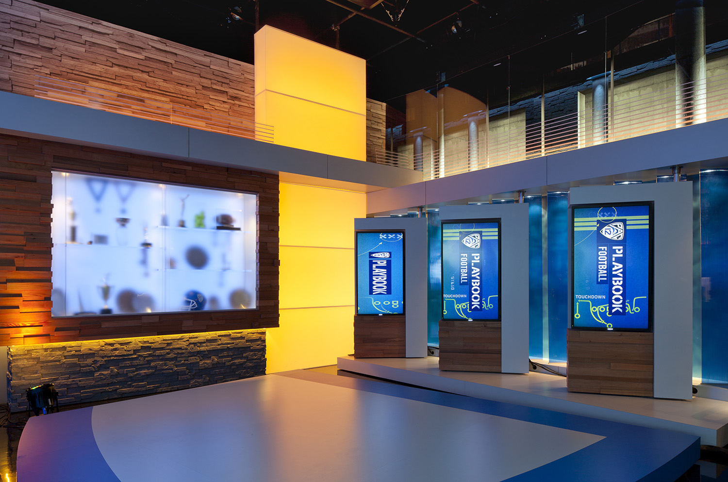 For the Pac-12 Network office’s new command center, a state-of-the-art officiating room where officials monitor plays and review reps calls, we custom designed movable tables and mounted two oversized monitors using their specified technology. We energized their production studios and worked with trades on lighting, sound proofing and integrating technology.